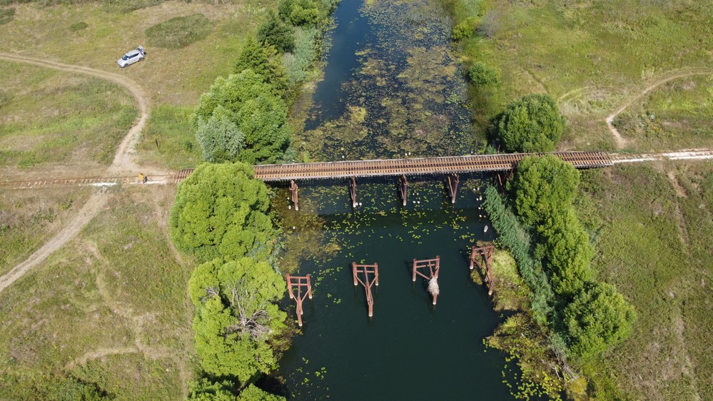 ЖД мост на узкоколейном пути от территории завода до территории шахты Бебяевского месторождения